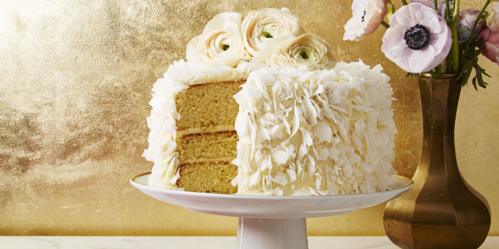- Assemble cake: Place 1 cake layer on cake plate, flat side up. Spread with 3⁄4 cup frosting and top with another cake layer, flat side up. Spread with 3⁄4 cup frosting. Top with remaining cake layer, flat side up. Lightly frost side and top of cake with frosting to barely coat. Refrigerate assembled cake and remaining frosting at least 1 hour Frost top and side of cake with remaining frosting. Cover top and side of cake with coconut flakes. Cake can be refrigerated up to 6 hours. (Cover loosely with plastic wrap.) To serve, let stand at room temperature 1 hour.