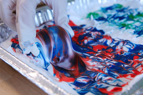 6. Wipe the shaving cream off with a clean paper towel to reveal your colorful marbled pattern.